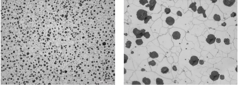 Un contenuto di carbonio più elevato può favorire la grafitizzazione dei getti. Poiché la grafite assume una forma sferica, può assorbire energia nelle applicazioni meccaniche e quindi migliorare le proprietà fisiche dei macchinari.